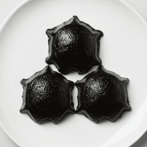 ねっとりした風味高い黒ごまと、かりっとした小麦粉せんべい。